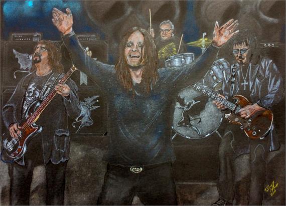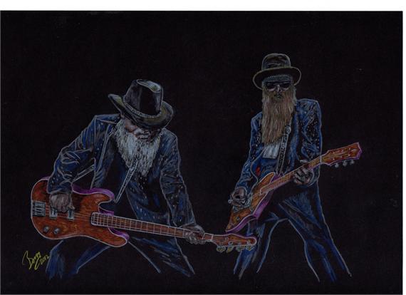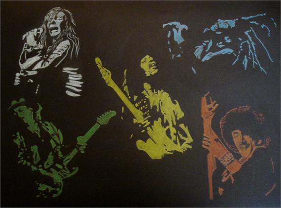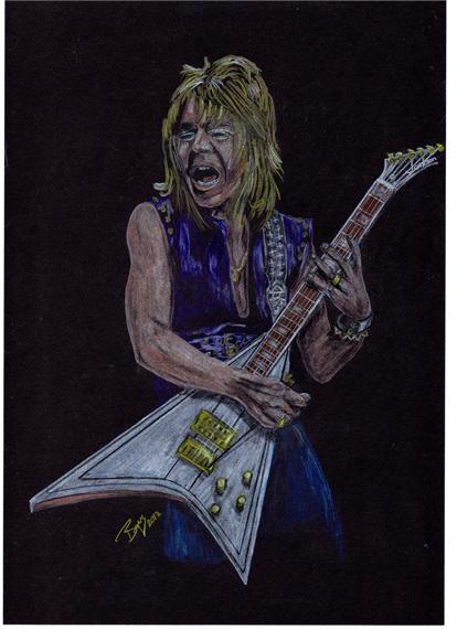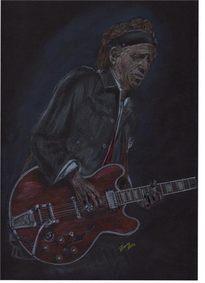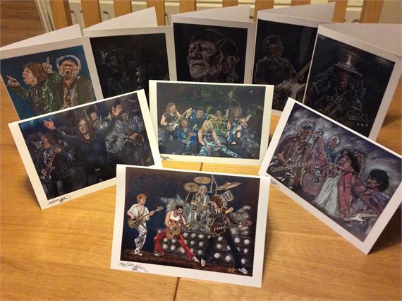 Introducing a range of original artwork featuring Rock Star Drawings on A4 and A3 black card background.