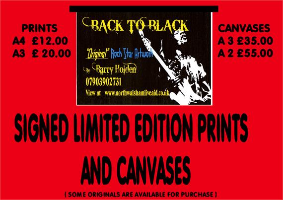 IN ADDITION I CAN NOW PROVIDE PROFESSIONAL A4 and A3 PRINTS FOR SOME OF MY WORK A4 PRINTS ARE £12.00 AND A3 PRINTS ARE £20.00 PLEASE E MAIL ME TO ENQUIRE. ALSO GREETINGS CARDS ARE AVAILABLE PRICED £3.00 EACH FOR MANY OF MY DRAWINGS. bazza.nwliveaid@gmail.com Specific Stars can be commissioned Via the websiteCall Barry on 01692 403883 for more info.