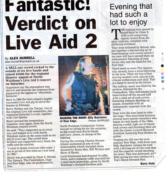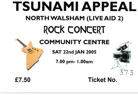 Following the Tsunami on Boxing day 2004. It was decided to reform the North Walsham Live Aid organisation to help with the appeal. there was a huge response in that six bands performed at the Community centre on 22nd January 2005, a huge raffle was held and a memorabilia auction all with the help of local businesses raised almost