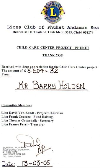 £6,000, which was spent helping the International Lions Club build a family centre for orphans in Thailand (see