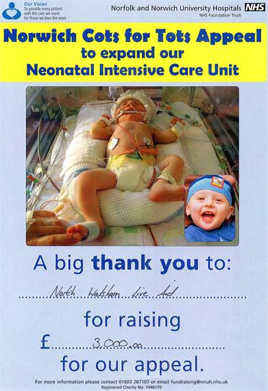 I anticipate being able to present a cheque for £3,000 to the “Cots For Tots “ appeal in the near future.