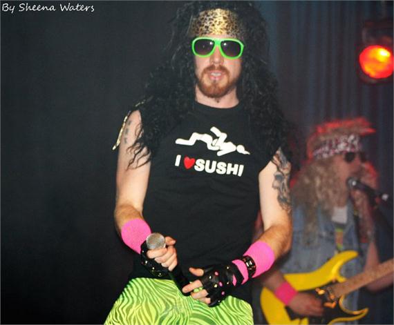 The evening was brought to a climax in more ways than one by POUT AT THE DEVIL resplendent in Lycra pants, shades and long hair hammering out Van Halen, Bon Jovi, and many others, this was their first time in North Walsham, certainly not their last.
