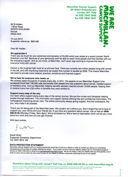 Providing all the cash for the auction is paid I am sure I will be able to present a cheque for £5,000. to the McMillan Peadiatric Nurses in Norfolk.