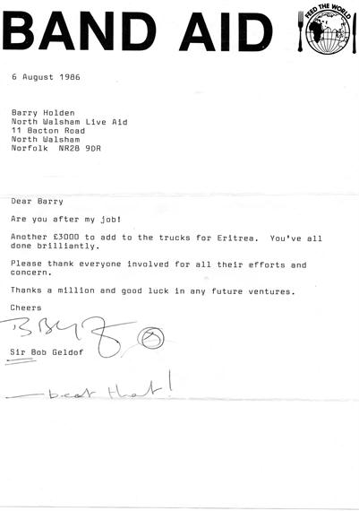 Welcome to the North Walsham Live Aid website, It has taken a while to get here but I think we are almost done. Many thanks are due to Wayne Beauchamp and Daryl Blyth for designing and providing the website.